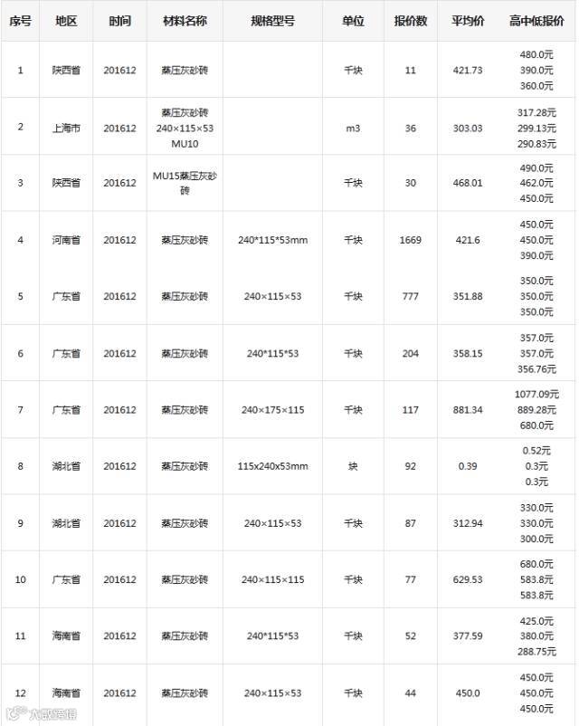 5)广材网大数据分析参考价范围:0.31~0.44(元/块,含税)