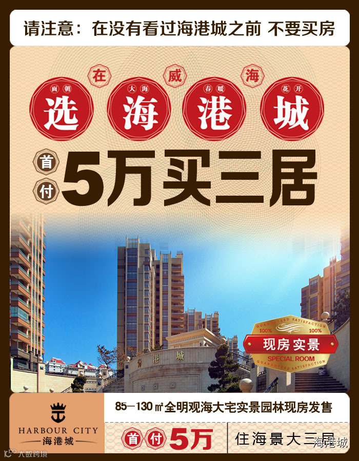 对,没有错,就是5万。只要5万,我们就可以有一个属于自己的“家”。现在【海港城】85—130㎡海景大三居火热销售,百变的户型空间,可以满足您把父母接到身边,让他们与儿孙同乐的需求。5分钟直达经区车站商圈,新港码头近在咫尺,衣食住行,安心无忧。