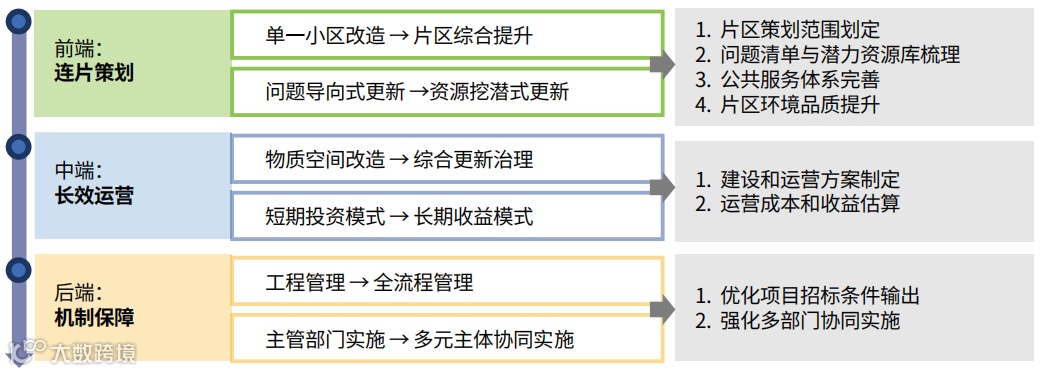 从“工程管理”转向“全流程管理”。由老旧小区单独工程建设招标扩展至涵盖“工程建设—运营—管养”全流程的一体化招标,确保方案得以有效落地实施,生成完整且清晰的实施任务书,从而完善老旧小区改造项目的管理机制。