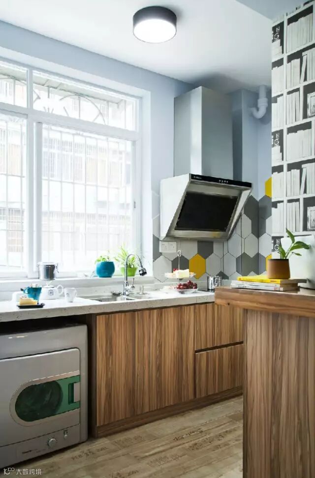 阳台的变化更不必说,整个做成开放式厨房+吧台,一两个人不需要单独餐厅,吃饭的问题直接在吧台解决了。