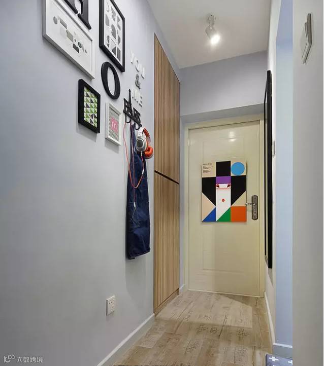玄关处进行了较大的改动,移动了玄关柜的位置,配上挂画,别有格调。