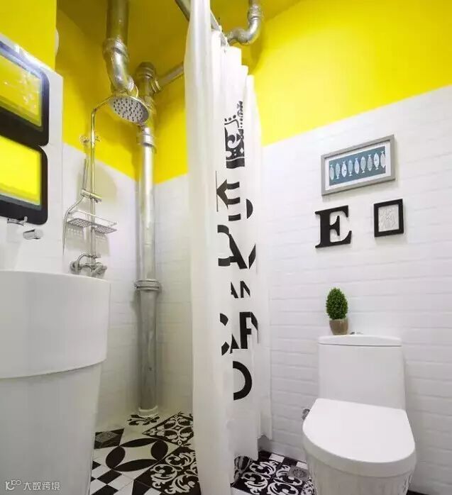 位于玄关和卧室之间位置的卫生间也进行了翻新,黑白黄真是大气亮眼的配色方案~