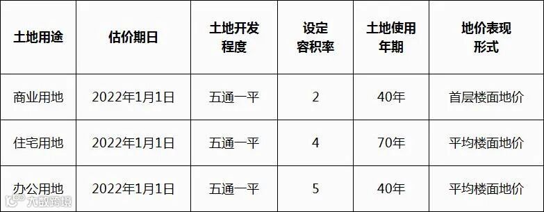 1.住宅用地、办公用地的价格表现形式为平均楼面地价,在实际成果应用过程中可通过容积率修正转换成地面地价;商业用地的价格表现形式为首层楼面地价,在实际成果应用过程中可通过容积率修正或楼层修正转换成平均楼面地价及地面地价;