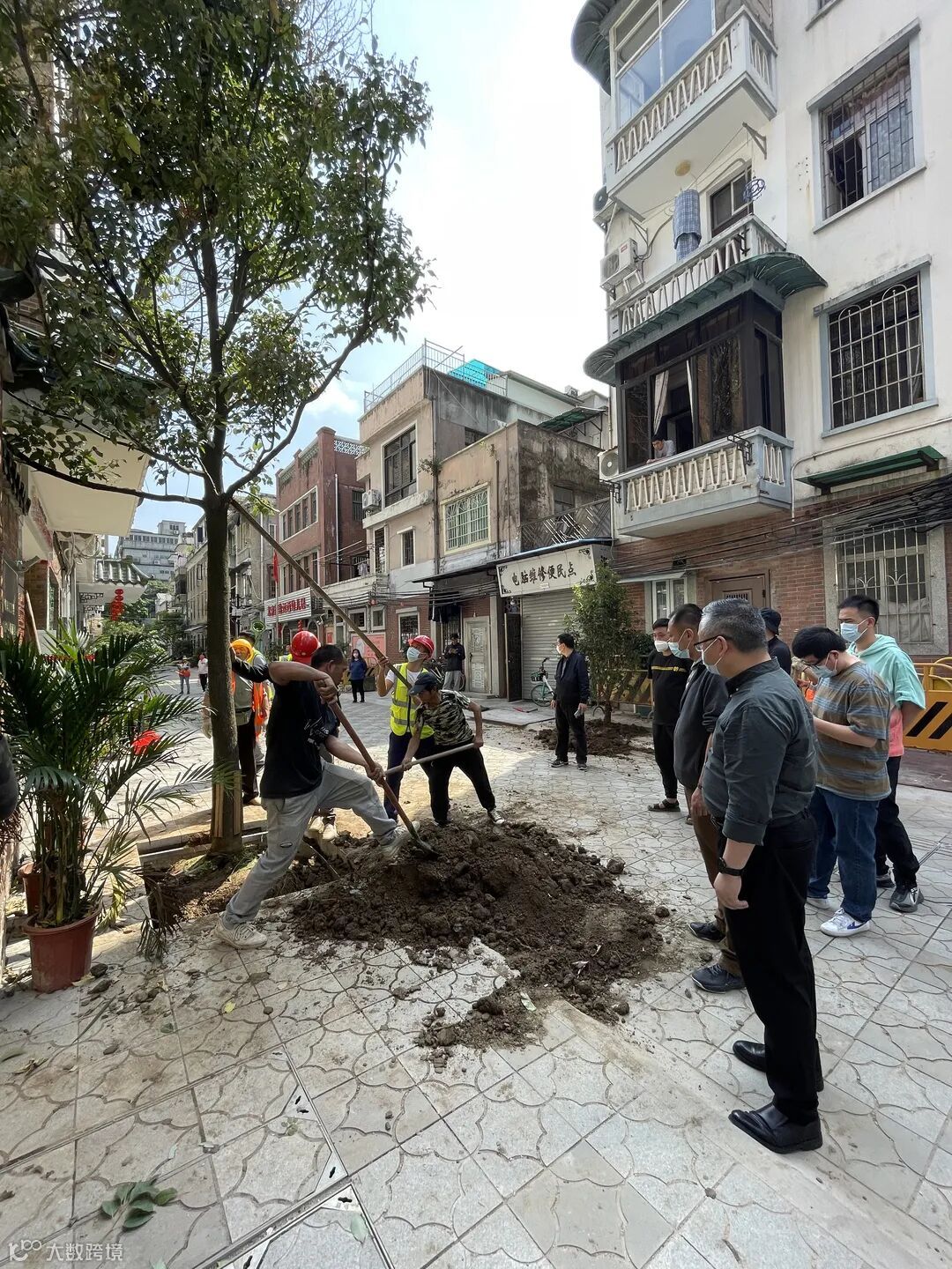 3月12日为全民植树节,越秀区政府、越秀区房管局、北京街道办事处、盐运西社区绿化补植公众意见咨询委员会、居委会、居民代表及各参建单位在盐运西社区正街举行了绿化补植活动。作为盐运西老旧小区微改造项目的设计单位,我院董事长骆建云与院设计部负责设计师参与了植树过程。