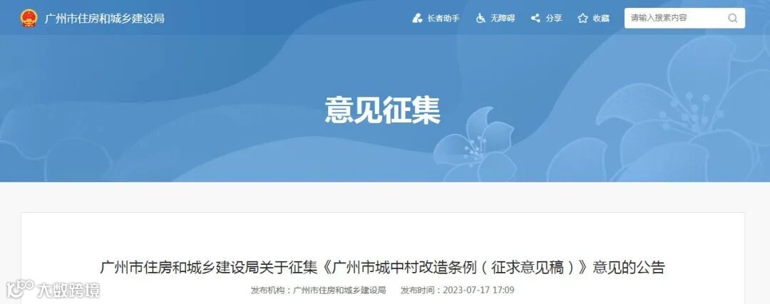 《广州市城中村改造条例》是今年我市的重点立法项目。为了做好《广州市城中村改造条例》起草工作,保障立法的科学性、民主性和合法性,在立法过程中通过多种渠道,广泛征求和听取社会公众的意见,现向社会公众公开征求意见。