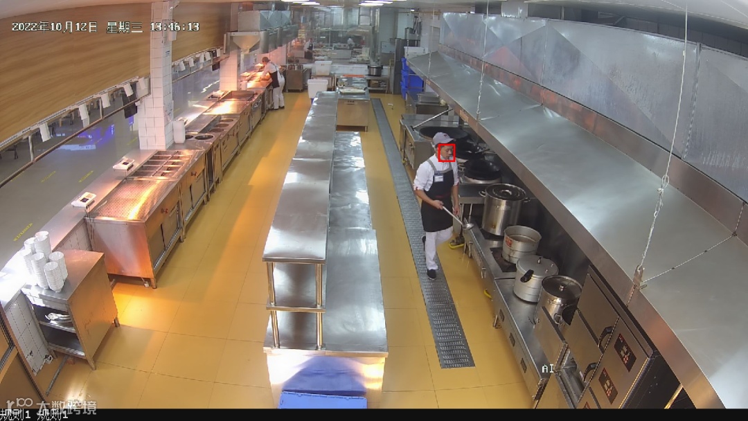 在食堂后厨人员监管方面,东贝食安AI行为识别摄像机基于AI视觉图像分析技术,可对未戴口罩、工服、帽子等不符合规定的着装、行为等情景进行实时识别,现场立即发出告警提醒,并告知相关责任人,同时集中式远程实时监控,系统可汇聚门店所有的视频监控及告警信息,进行统计分析,提高了监管效率,强化食安后厨管理。