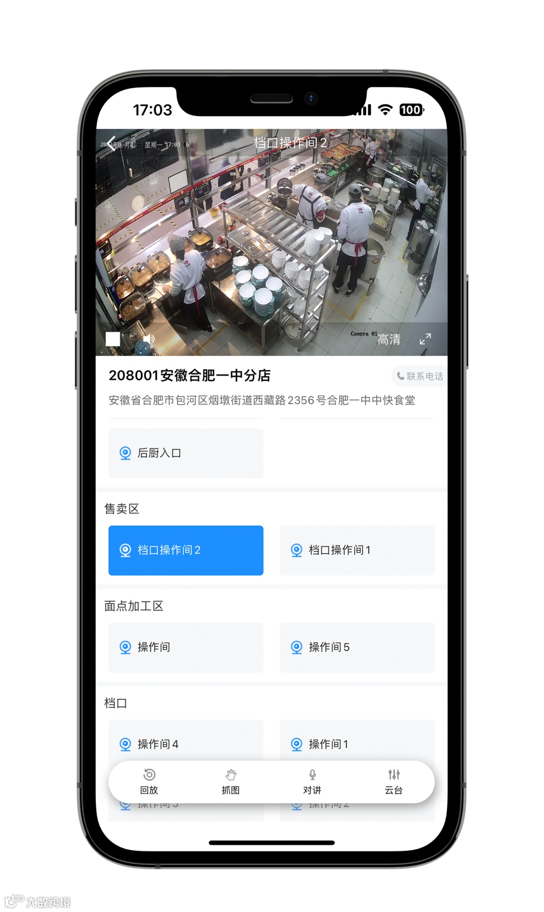 东贝食安通过部署AI行为识别摄像机、动火离人摄像机、高清录像机等,可对餐饮后厨的卫生及安全情况做到全面监管,做到无死角、高细节,倒逼后厨人员规范操作。