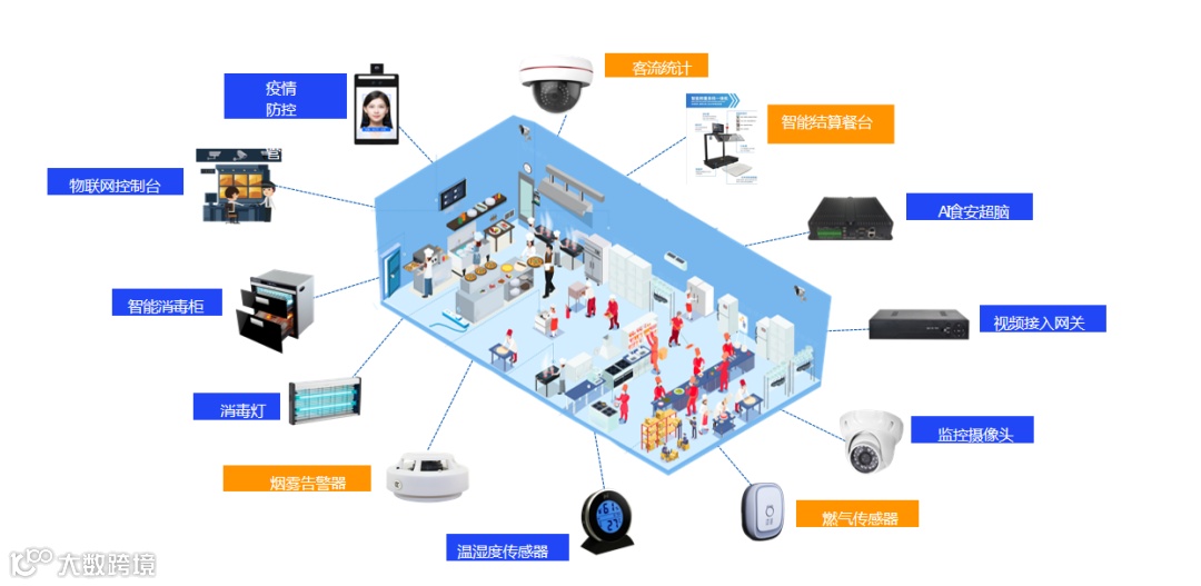 晨检测温、农残检测、留样冰箱、餐具洗消、ATP细菌检测等设备数据可通过技术化手段采集设备信息并同步至督贝系统,并在关键控制点中增加仓库挡鼠板、防潮防湿、工作服口罩帽子监测等多项智能识别监测手段,应对常见食堂火灾事故的预防,在后厨多处安装环境监测、火情探测、炉灶自动化灭火等硬件设备,实现食堂食安信息化管理,一旦发现异常情况立即预警播报并上传督贝系统,实现对食品安全隐患的事先预防。