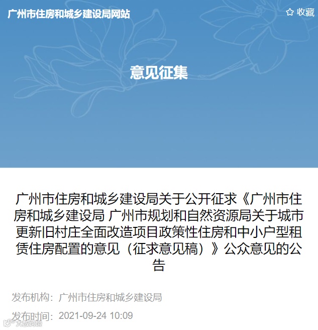 根据《国务院办公厅关于加快培育和发展住房租赁市场的若干意见》(国办发〔2016〕39号)、《国务院办公厅关于加快发展保障性租赁住房的意见》(国办发〔2021〕22号)、《中共广州市委 广州市人民政府关于深化城市更新工作推动高质量发展的实施意见》(穗字〔2020〕10号)、《广州市人民政府办公厅关于进一步加强住房保障工作的意见》(穗府办〔2021〕6号)等规定,现就我市城市更新旧村庄全面改造项目(以下简称“改造项目”)政策性住房和中小户型租赁住房配置提出以下意见: