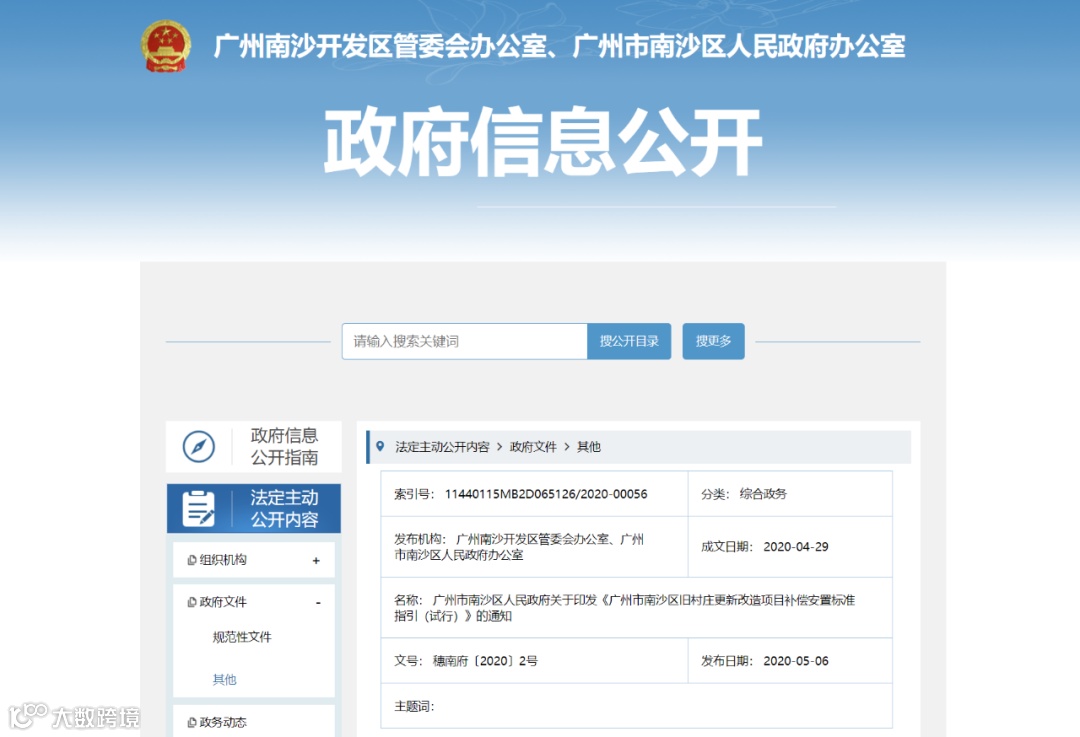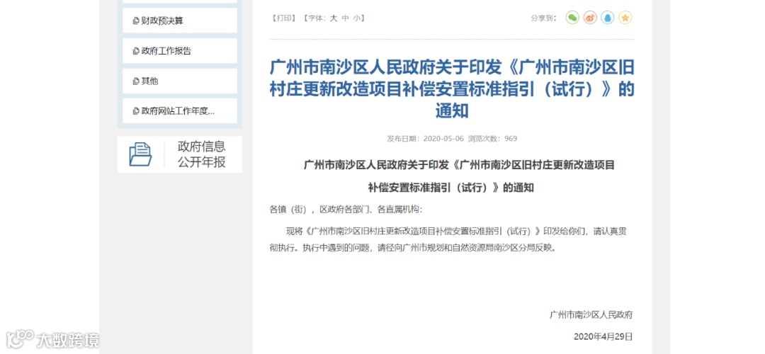 ●请通过“http://www.gzns.gov.cn”查看《广州市南沙区旧村庄更新改造项目补偿安置标准指引(试行)》原文。
