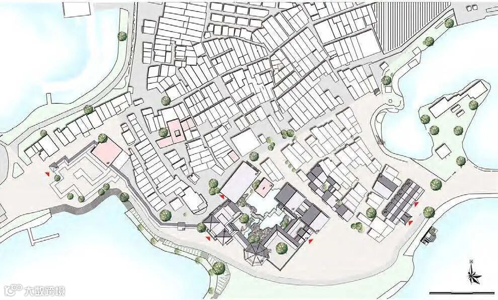 重构公共空间体系,主要是通过将三官庙等历史文物作为节点铺设展开而设计的。首先,应在规划上拆除三官庙西侧围墙,恢复三官庙前广场的公开活动空间。