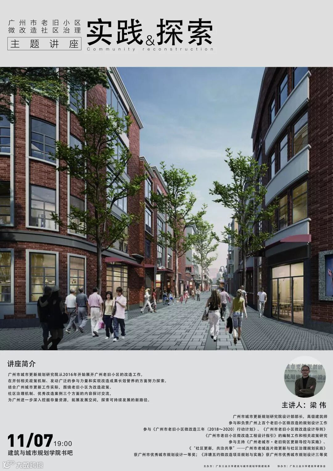 梁伟副部长在讲座中分享了我院参与广州老旧小区微改造的相关工作,展示了我院在开创相关政策机制、发动公众参与力量和改造成果长效管养等社区综合治理方面的探索和取得的成效,并结合广州城市更新工作实际,围绕老旧小区微改造基本情况、相关政策、治理机制、改造案例、探索路径等方面内容,与在座师生展开了深入交流与探讨。