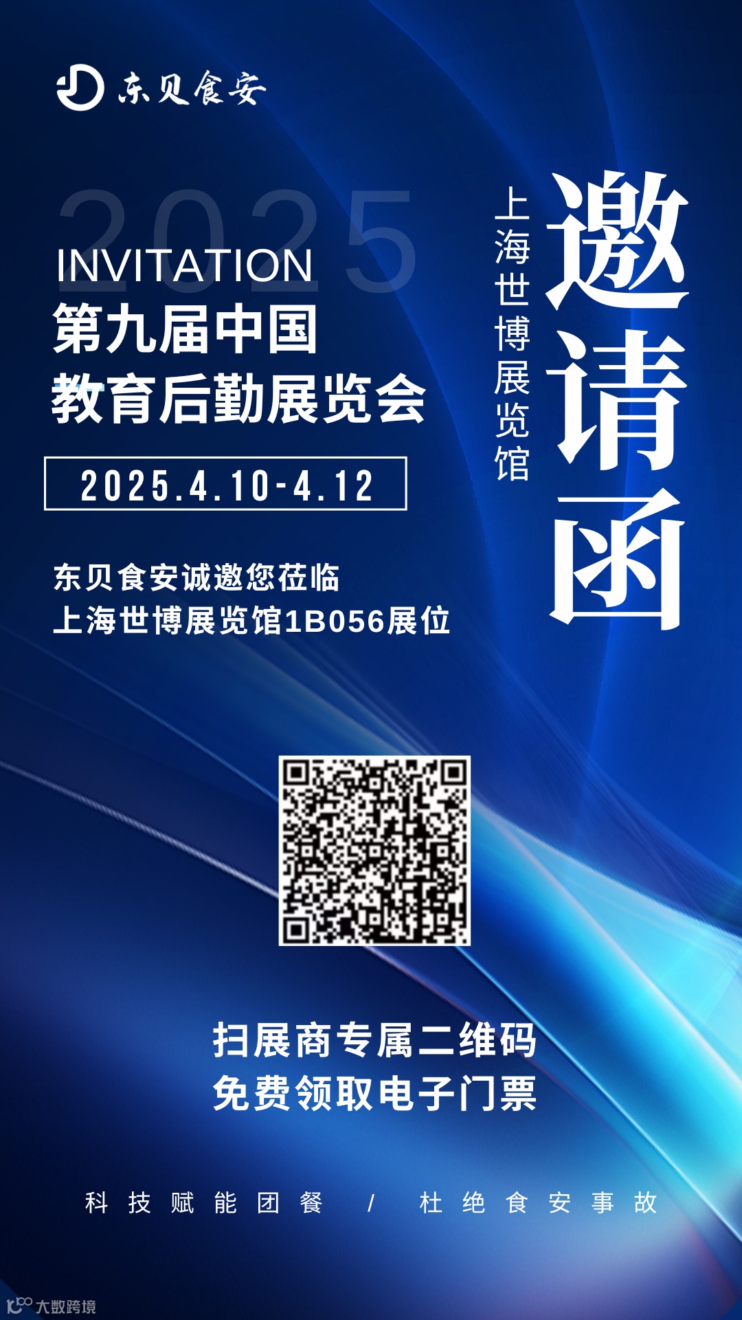 东贝食安诚邀您莅临中国教育后勤展,共同推动高校食安管理从 “事后监管” 迈向 “全程预防”,开启校园食安数智化的新篇章 !