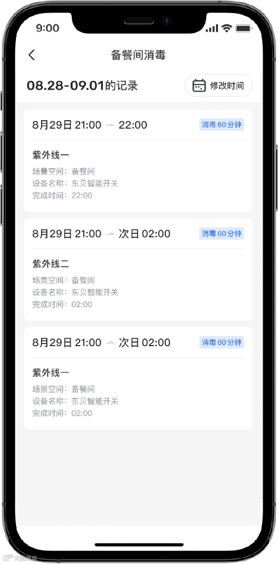 平台远程控制管理支持智慧门店APP远程查看食堂门店紫外线灯开关面板的工作状态,可通过APP端远程控制紫外线灯开关,自主设定好紫外线消毒灯的工作时间,无人时自动开启,消毒完成时自动关闭,灵活调整消毒的时长,全面保障食堂门店紫外线灯的消毒杀菌性能稳定。