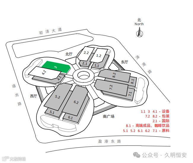 步行至西入口安检后,向东步行至中央广场后,从3馆18或19号门进入
