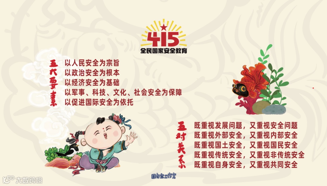 国家安全主要包括政治安全、国土安全、军事安全、经济安全、文化安全、社会安全、科技安全、网络安全、生态安全、资源安全、核安全、海外利益安全、极地安全、太空安全、深海安全和生物安全等16个领域。