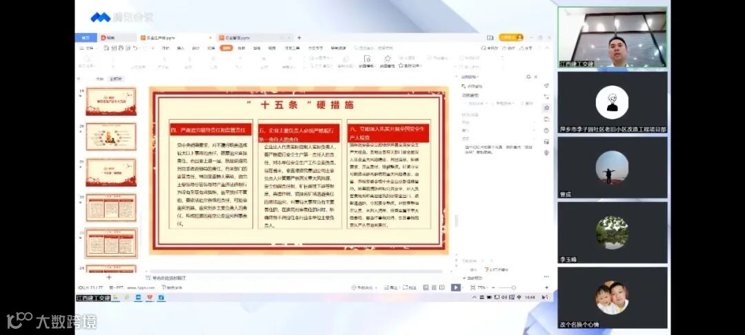 为开展好2022年“安全生产月”活动,大力推进公司安全生产工作,提高工程建设安全管理水平和全体职工安全意识,6月13日下午,我司在采取线上腾讯会议和线下专题会议相结合的形式在全司范围内开展此活动。公司各部门负责人及各在建项目管理人员参加会议,公司质量安全技术部组织此次会议。