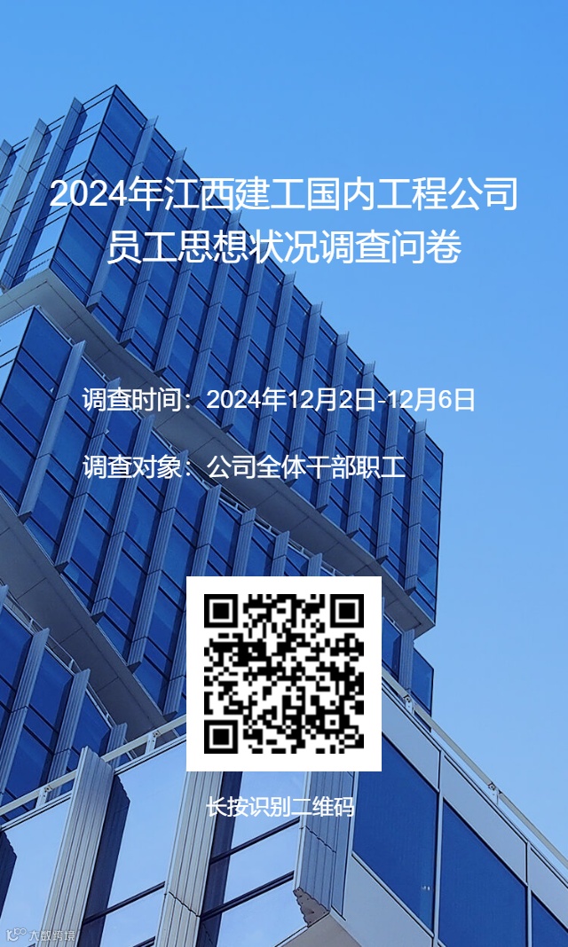 为客观准确把握员工思想动态,了解员工队伍干事创业氛围,及时发现问题,解决问题,为公司顺利完成全年目标任务、进一步推动高质量发展等工作提供思想保障,特邀请您参与此次员工思想动态调查。