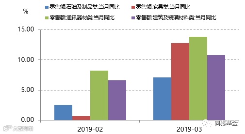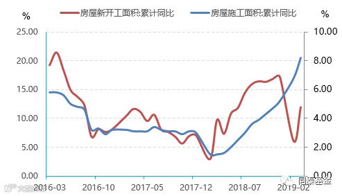 3月数据分化比较明显,预期内的是制造业投资持续回落,同比增长4.6%,与今年企业主动去库存,盈利减弱带动投资回落的预期一致;基建投资增速2.87%,基建投资发力低于预期,近期公布的财政数据显示,一季度财政支出同比增长15.41%,并且螺纹钢,水泥等商品表现较好,预计2季度基建发力可能更为强劲;预期之外的是房地产投资表现出持续韧性,数据上看,主要源于房地产库存再造过程中新开工以及施工的较好表现,弥补了土地购置的负效应,另外销售以及融资均出现了同比改善。预计土地购置增速回落趋势难挡,但房地产投资的韧性可能超市场预期。