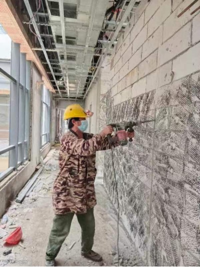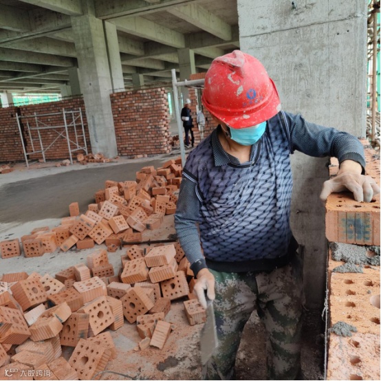 上栗县工业园集成线路产业园及配套设施EPC项目,泥工许国庆,正在砌筑配送中心3号厂房3楼内墙
