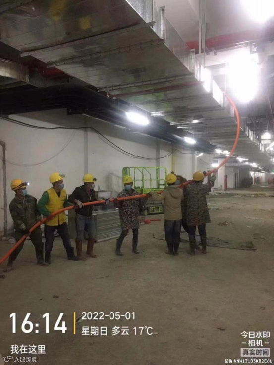 南昌象湖老年养护中心项目,水电班组正在地下室安装电缆