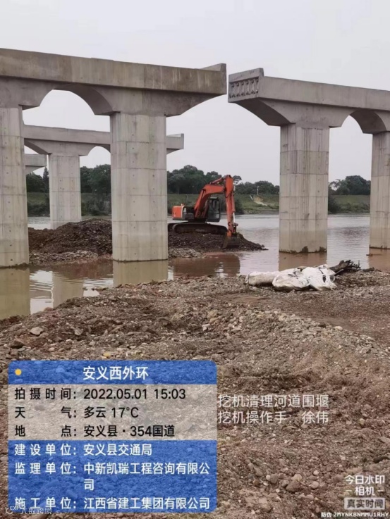安义西外环路工程项目,挖机操作手徐伟,正在清理河道围堰