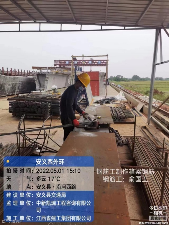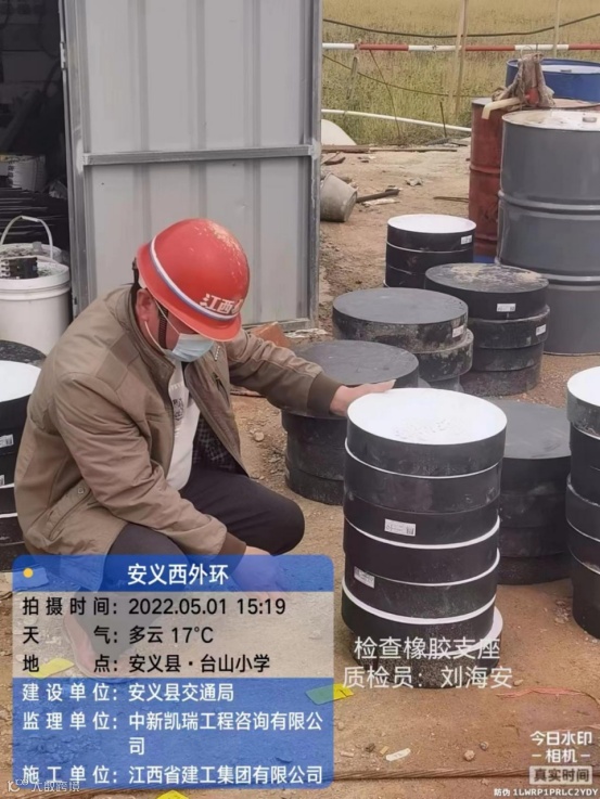 安义西外环路工程项目,质检员刘海安,正在检查橡胶支座