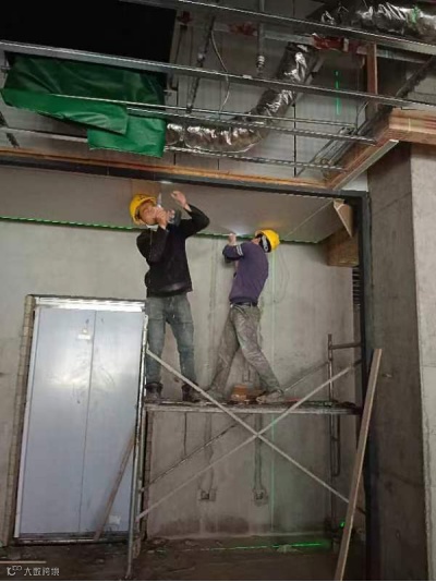 南昌象湖老年养护中心项目,装修班组正在安装吊顶模板