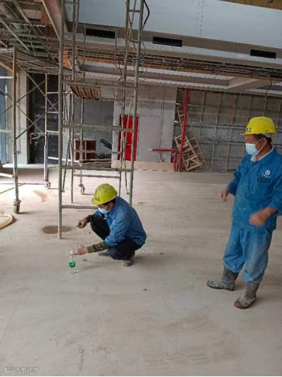 南昌象湖老年养护中心项目,防水班组余官宝、胡国强,正在地面补漏