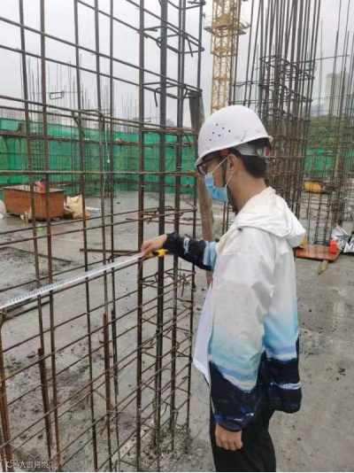 莆田市城厢区洋西片区安置地块A项目,施工员刘良辉,正在进行墙体钢筋间距检查。