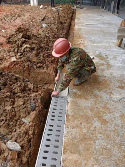 南昌象湖老年养护中心项目,室外班组卢金林正在安装截水沟盖板
