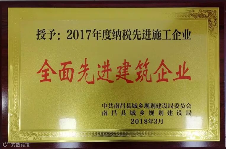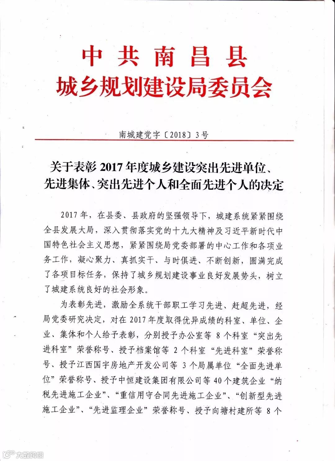 近日,中建城开再传喜讯。中建城开环境建设股份有限公司被南昌县城乡规划建设局委员会授予“2017年度纳税先进施工企业全面先进建筑企业”荣誉称号。