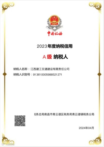 近日,交建公司被税务局评定为“2023年度A级纳税信用等级企业”,这一荣誉的取得不仅是对公司财税管理能力的认可,也是对公司严格遵守国家税法、积极履行纳税义务的肯定,更是对长期坚持诚信经营和持续发展的鼓励。