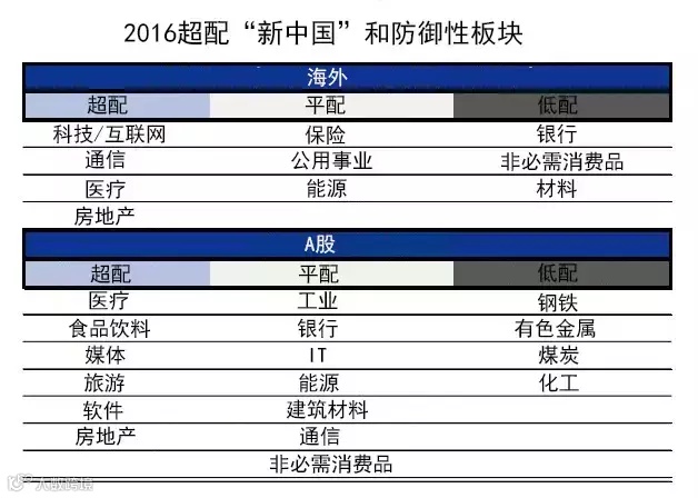 我们的2016年板块配置策略受以下因素影响:经济基本面的下行风险、2016年第一季度的供应冲击、人民币贬值风险,以及实体经济的信贷风险。