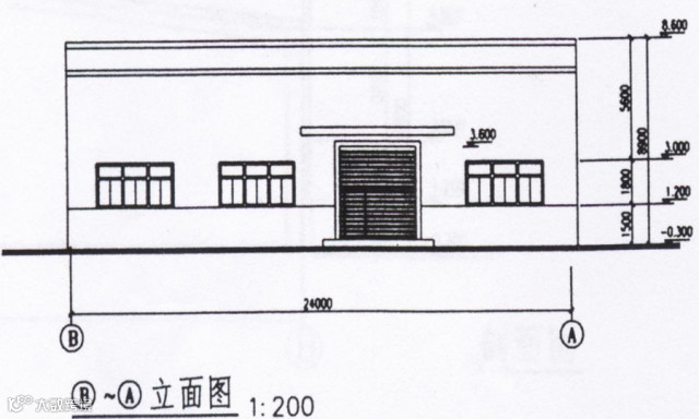 跨度24米,柱距6米,总长度60米,檐口高度6.8米,牛腿标高5.0米,女儿墙标高8.6米;