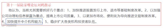 刘鹤副总理在第十一届陆家嘴论坛上表示,要提升资本市场中介结构的能力。这表态的内涵非常大,因为过去中国的券商行业靠天吃饭,并没有创新和创造价值的能力,原因之一就是投资银行业务能力薄弱,也导致中国的券商和国际市场同行相比,缺乏竞争力。