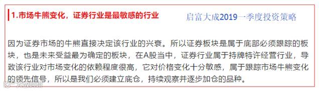 逻辑一:经济转型,产业升级中长期发展机会。重点从产业链上游优先受益、行业龙头市场定位、国产替代、基本面优势等方面入手。在《启富大成2019一季度投资策略》中有详细分析。