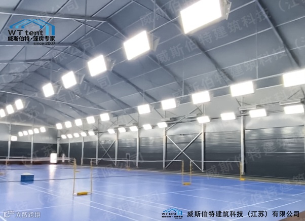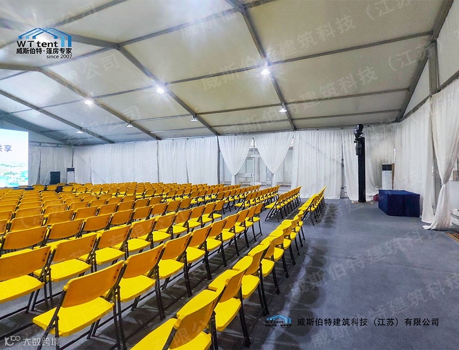 威斯伯特建筑科技(江苏)有限公司所有产品均采用德国制造标准,主体结构采用高强度铝合金。篷布以聚丝长脂为基布,表面附着PVC膜。篷布以白色为主,其他颜色可定制。威斯伯特智能篷房具有特性有:防风雨、防紫外线、B1级防火、抗寒、抗褶皱顶布、不透光、重量850g/m2,防火阻燃,符合德国DIN 4102 B1,M2标准风载能力 80-100Km/h。