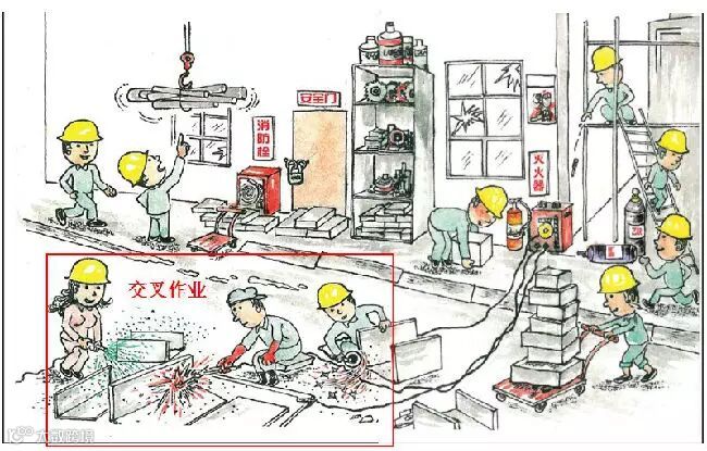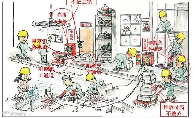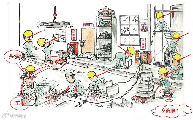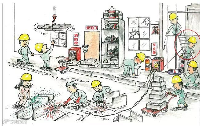下面这幅施工漫画中,存在着很多安全隐患,你能从中找出几处?