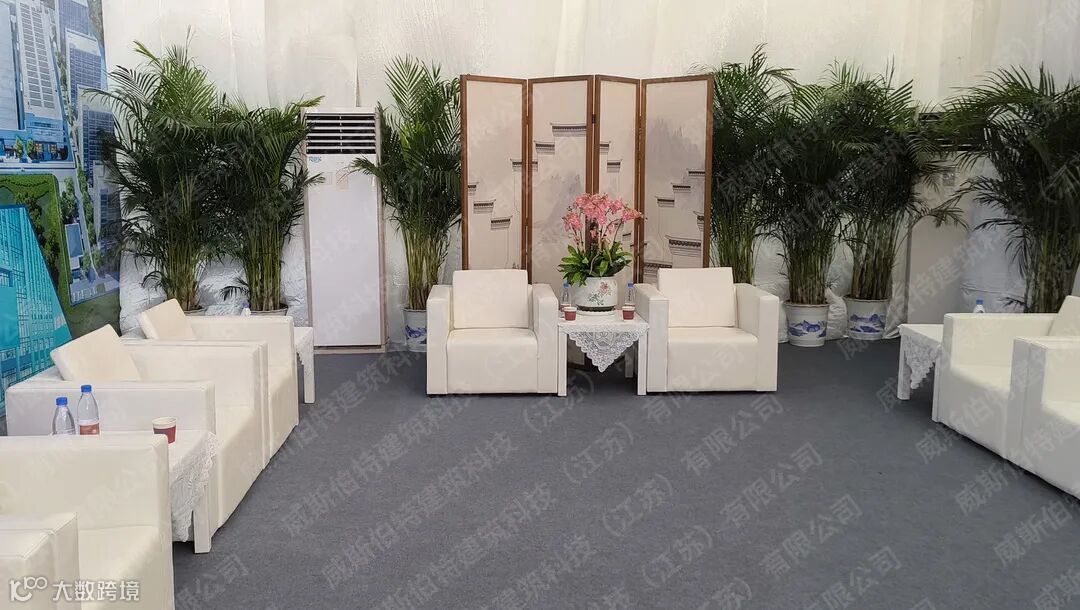 威斯伯特建筑科技(江苏)有限公司所有产品均采用德国制造标准,主体结构采用高强度铝合金。篷布以聚丝长脂为基布,表面附着PVC膜。篷布以白色为主,其他颜色可定制。威斯伯特智能篷房具有特性有:防风雨、防紫外线、B1级防火、抗寒、抗褶皱顶布、不透光、重量850g/m2,防火阻燃,符合德国DIN 4102 B1,M2标准风载能力 80-100Km/h。