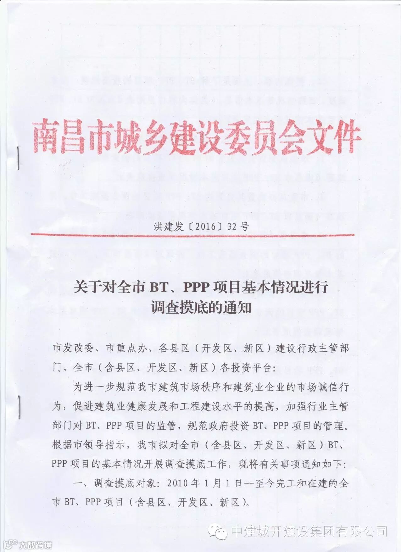 为进一步规范我市建筑市场秩序和建筑业企业的市场诚信行为,促进建筑业健康发展和工程建设水平的提高,加强行业主管部门对BT、PPP项目的监管,规范政府投资BT、PPP项目的管理。根据市领导指示,我市拟对全市(含县区、开发区、新区)BT、PPP项目的基本情况开展调查摸底工作,现将有关事项通知如下: