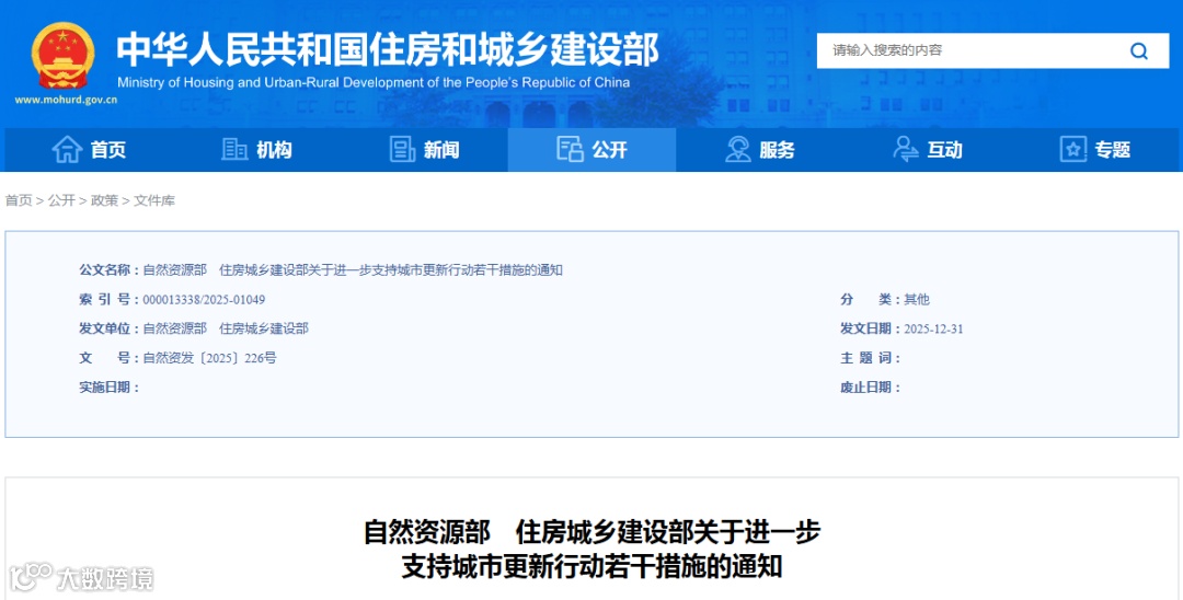 2026年1月20日,自然资源部 住房城乡建设部发布《关于进一步支持城市更新行动若干措施的通知》(以下简称《通知》)。《通知》推出增强详细规划适应性、优化过渡期支持政策、推进存量土地和空间的临时利用、鼓励资源资产组合供应整体运营、创新不动产登记服务、妥善处置历史遗留问题等系列举措,着力破解城市更新中的政策堵点,进一步强化规划与土地政策融合。
