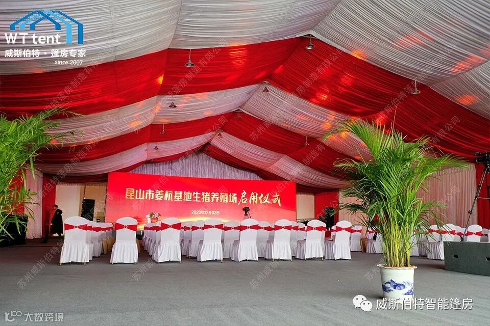 产品主要有:尖顶、人字顶、球形、弧形、拱形、桃型及各类异形篷房。我们的活动篷房、仓储篷房、婚庆篷房、展会篷房被广泛应用于家庭聚会、商务会议、展会展览、大型庆典、仓储物流、救灾检查等场景中。篷房中间无任何支柱,场地100%使用。