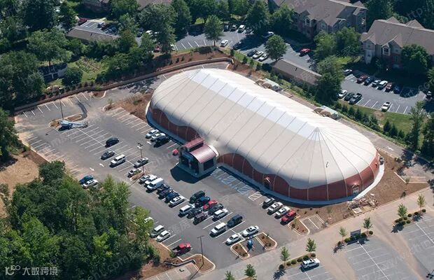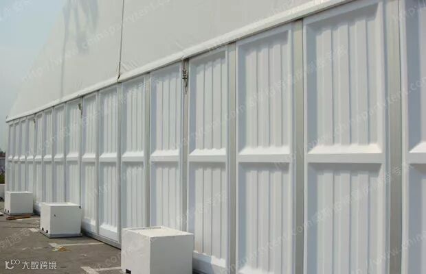 威斯伯特篷房跨度最大可以达到50米,边高最大有8米,顶高最大15米,长度是无限延伸。内部无立柱结构,可以提供十分广阔的使用空间,容纳数千人都是完全没有问题的。相比于一般的砖混建筑,这样的大型篷房,审批流程很快,对场地要求小,对地面破坏为零,可以灵活的应用于婚礼,会展,临时仓储,户外活动,体育场馆等场景上。