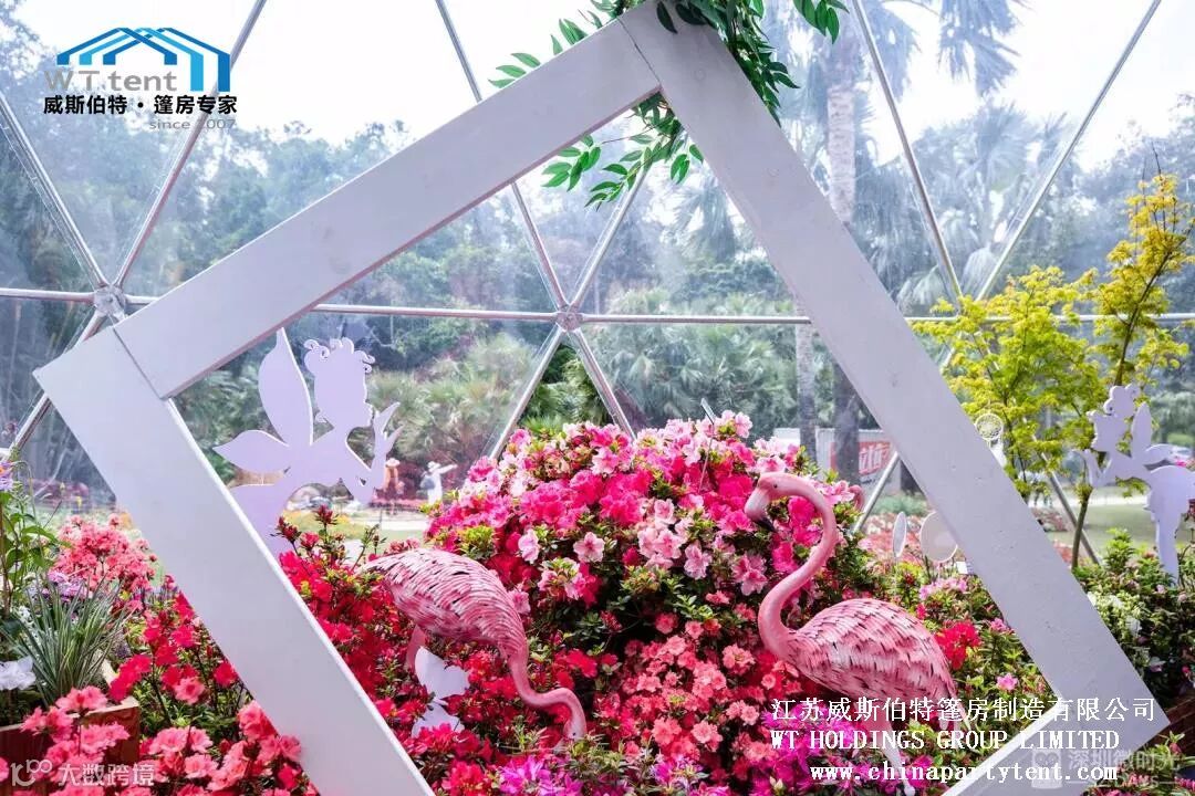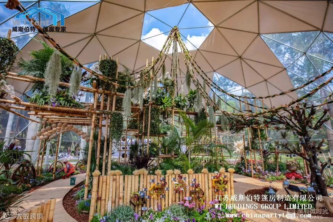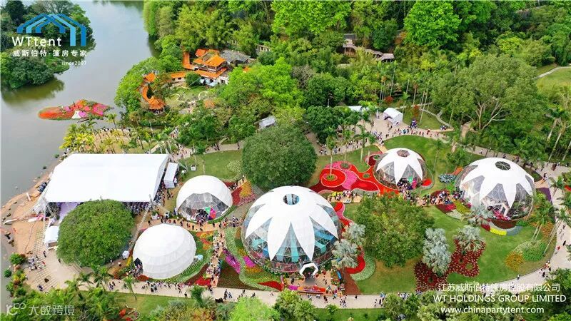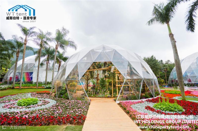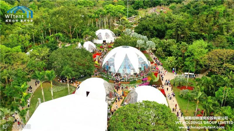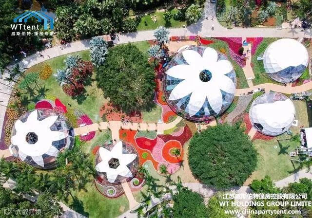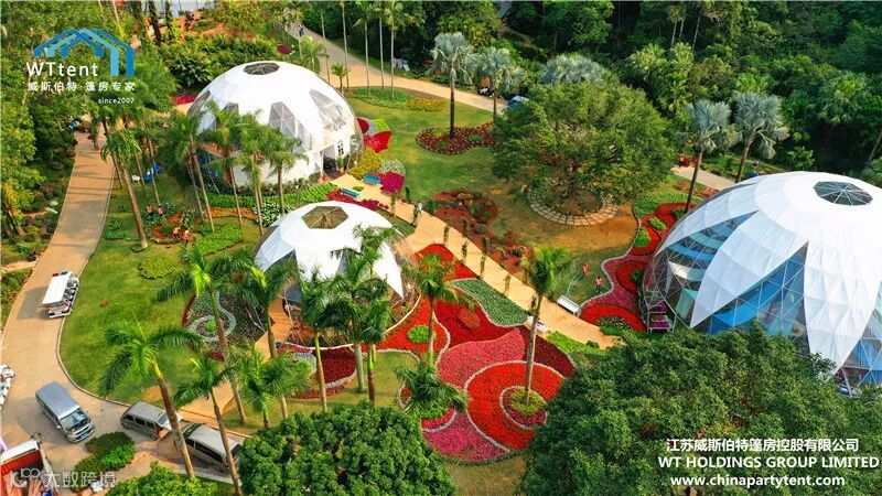 威斯伯特智能篷房科技有限公司与某市政府合作在当地植物园搭建了五个半球形篷房,举办了一场具有国际水平的大型花卉展。