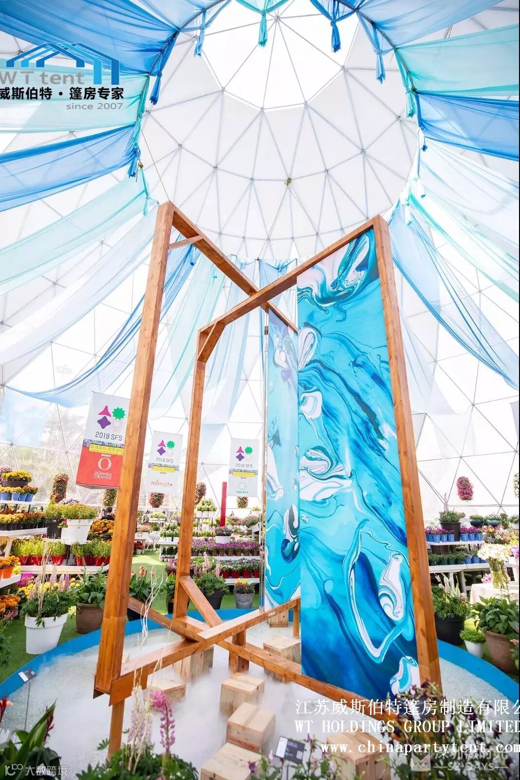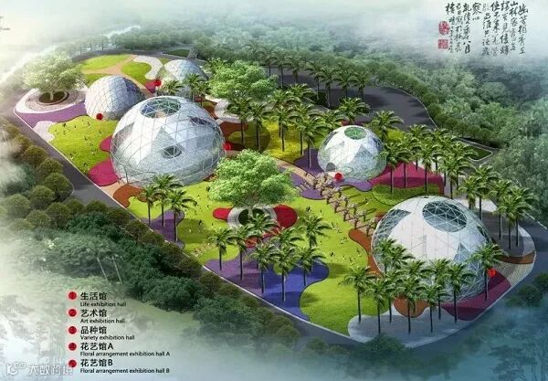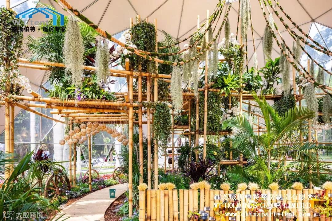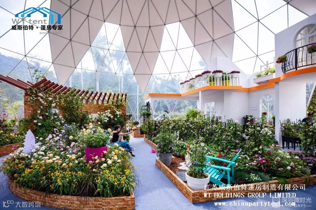 威斯伯特智能篷房科技有限公司与某市政府合作在当地植物园搭建了五个半球形篷房,举办了一场具有国际水平的大型花卉展。