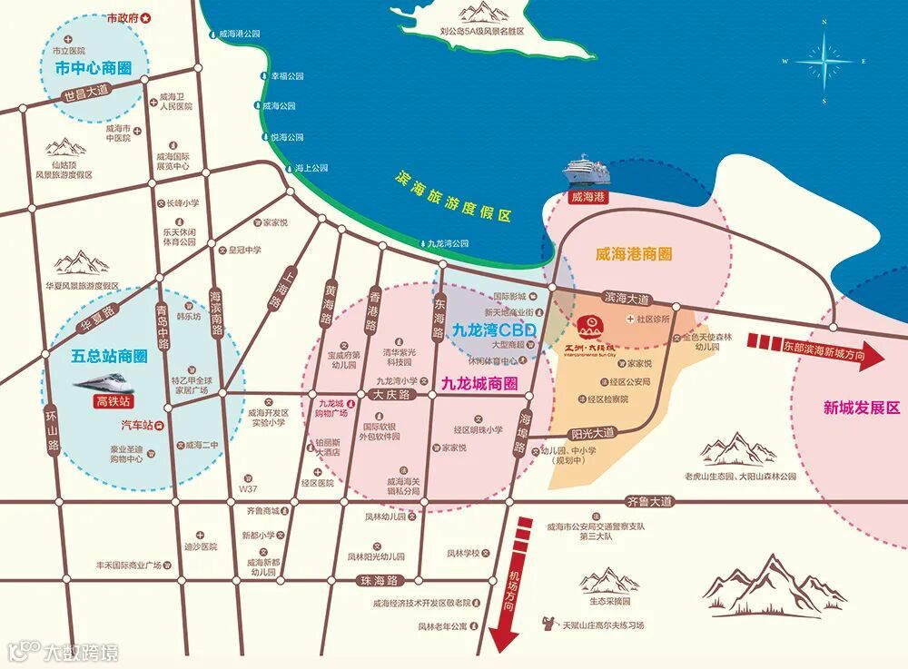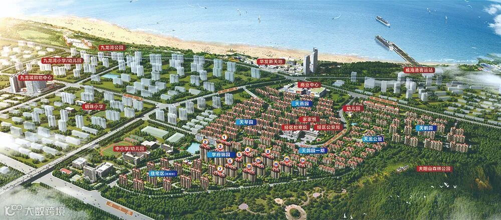 项目西侧规划有21班公立幼儿园、30班公立小学、48班公立初中,金色天使森林幼儿园已开园多年,周边还有九龙湾小学、明珠小学等,10分钟直达威海二中南校区、威海市实验高级中学,全龄优质教育,铺就成才之路。