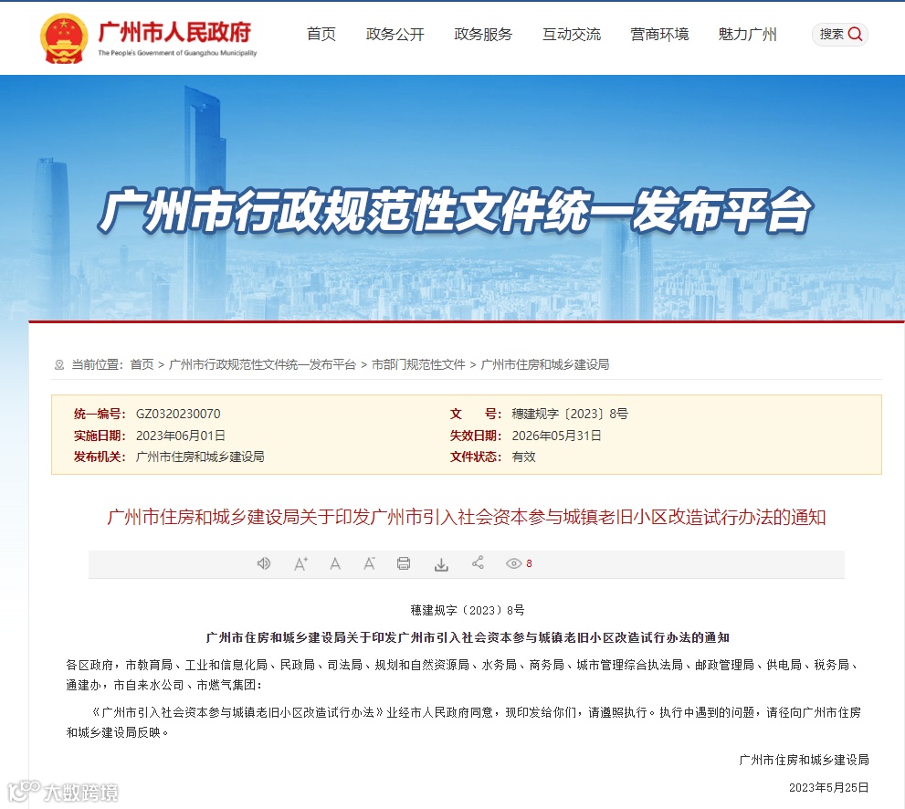 近日,在广州市住房与城乡建设局指导下,我院参与研究起草的《广州市引入社会资本参与城镇老旧小区改造试行办法》(以下简称《办法》)正式印发实施,这是广州在全国率先出台的引入社会资本参与城镇老旧小区改造全流程规范性文件,《办法》是广州市城镇老旧小区改造“1+N”配套政策之一,也是广州近年来开展老旧小区改造的重大实践创新成果。