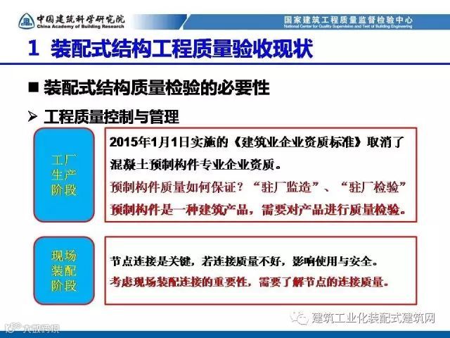 2017年3月22日,第十三届国际绿建大会--装配式建筑施工管理与质量检测论坛顺利召开,该论坛由装配式建筑行业龙头企业中建科技集团有限公司承办,来自全国相关管理部门、科研院所、装配式产业链企业、施工及检测企业的两百余位代表出席论坛。国家建筑工程质量监督检验中心工程及建设材料检测室主任孙彬做了题为《装配式混凝土结构工程质量检测与验收》的主旨演讲。本刊现全文转载,以期与读者共享专家观点。