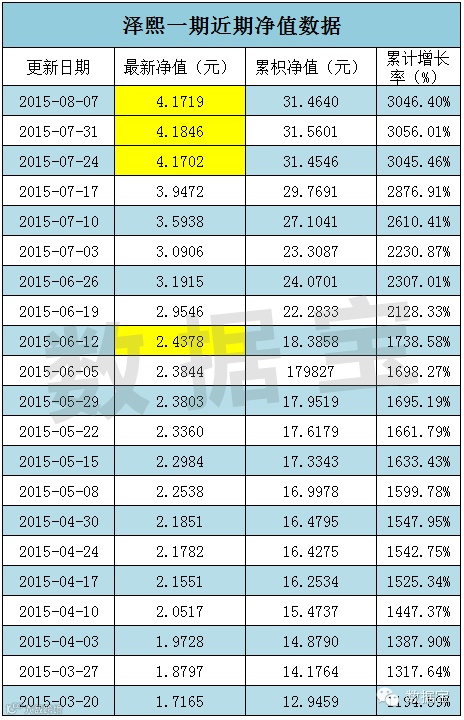 数据显示,6月12日到上周末,泽熙旗下5只股票型基金,其净值增长率平均高达42%,远超大盘同期表现。另,从泽熙官网可以看出,近3周泽熙旗下产品净值波动非常小,这可能预示着徐翔近期的仓位较低。下图是泽熙一期的净值增长数据。